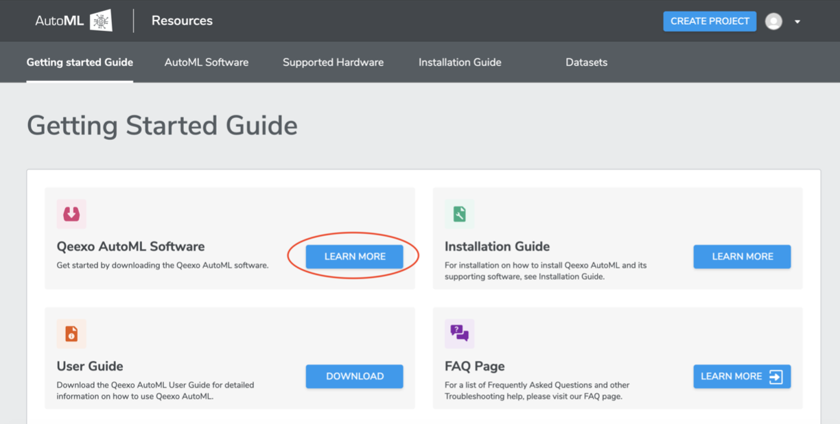 1. Once you registered and logged into your Qeexo AutoML account through https://qeexo.com/ , Please visit this link, select Qeexo AutoML Software, then select Windows to download the latest installer.